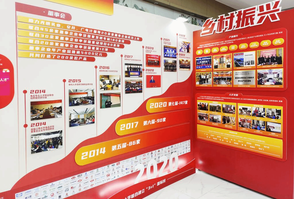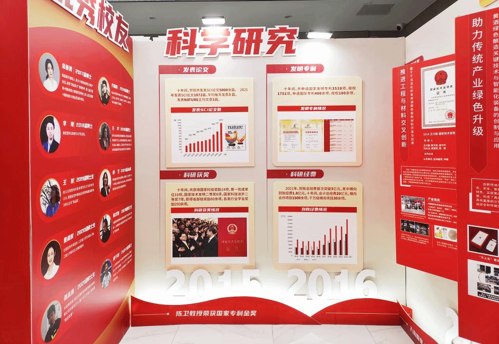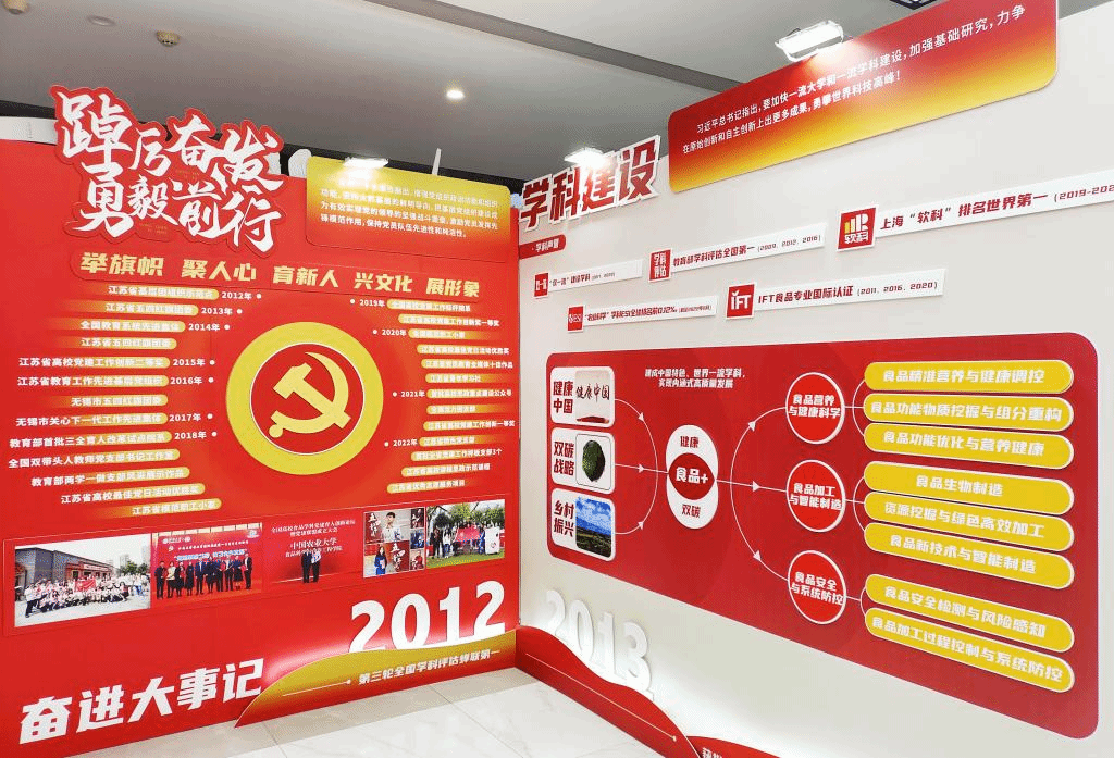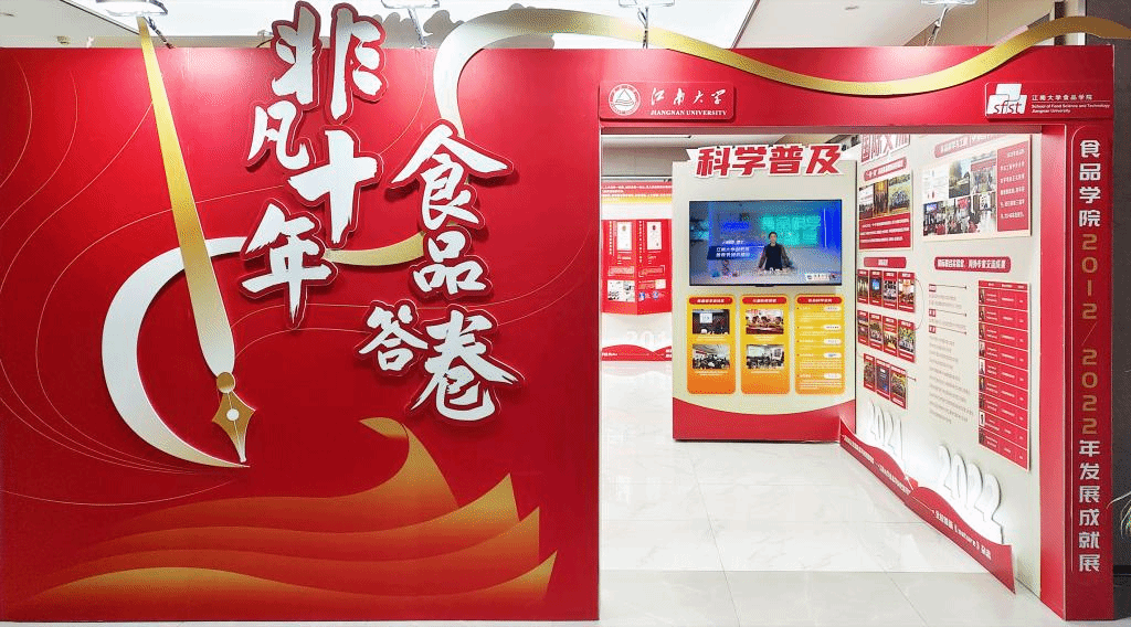 本次展览地点位于食品学院一楼大厅,全展以“非凡十年 食品答卷”为主题,以图文并茂的形式生动展现,十年间食品学院在党建思政、学科建设、立德树人、科学研究、社会资源、国际交流、文化育人、成绩荣誉等八个版块的发展成果。以史为鉴,开创未来,激励一代代江南食品人踔厉奋发,勇毅前行,书写“食”代答卷,传承“食”代精神!