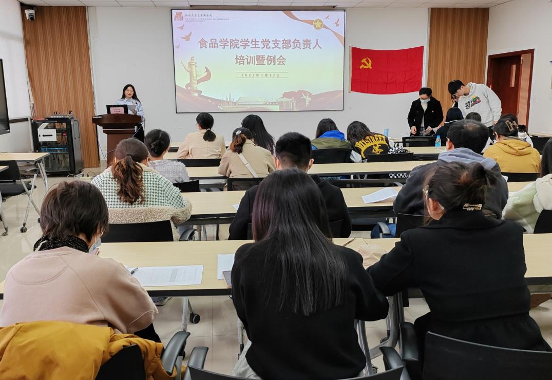 为学习贯彻学校有关部署安排,积极响应学校“我为师生办实事”的号召,进一步规范学生基层党支部各项工作开展,3月13日晚,食品学院在D912会议室举行2023年学生党支部负责人培训会暨“我为师生办实事”工作布置会。辅导员胡卉君、张任,各学生党支部书记、支委参加会议。