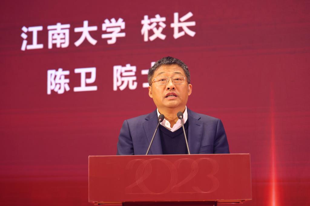 陈卫代表江南大学致欢迎辞,向长期关心支持江南大学发展的领导和专家表示诚挚的感谢。他指出,江苏食品科学与技术学会成立以来,取得了一系列丰硕的成绩,是推进江苏省食品产业科技创新发展的重要力量。展望未来,江南大学将继续全面支持江苏省食品科学与技术学会的各项工作,为江苏食品科技发展搭建平合、贡献力量。
