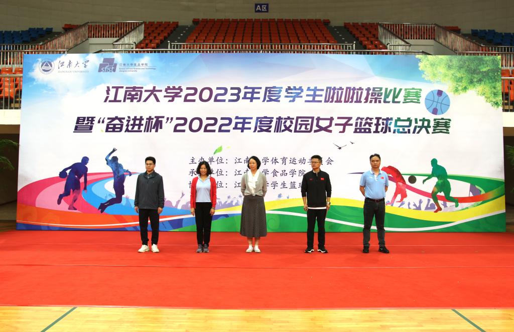 食品学院本科生张晶晶、体育部教师邓永佳分别代表运动员、裁判员宣誓。秦永和宣布,江南大学2023年度学生啦啦操比赛暨“奋进杯”校园女子篮球总决赛正式开赛。