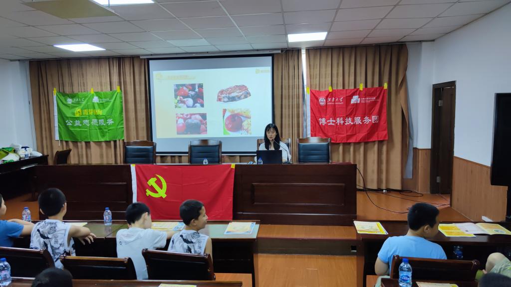 食品学院“青芽食育”大学生科普教育及实践团队走进绿园社区儿童会场,本期食育课堂主讲人——博士生党员陈冲、刘坤面向社区6-10岁儿童开展主题为《食品安全小小守护者》的教育教学活动,并与小朋友们进行实验互动,为儿童讲解科学、易懂的微生物知识。食品安全进社区团队走进康定社区中老年会场,3名博士(赵璞《膳食营养搭配》、杜美军《夏日食物中毒的防治》、张金《浅谈保健食品》)针对老百姓普遍关心的食品问题带来三场科普讲座,将所学专业知识运用到居民的日常饮食生活中,提高了乡村老人的食品安全意识。