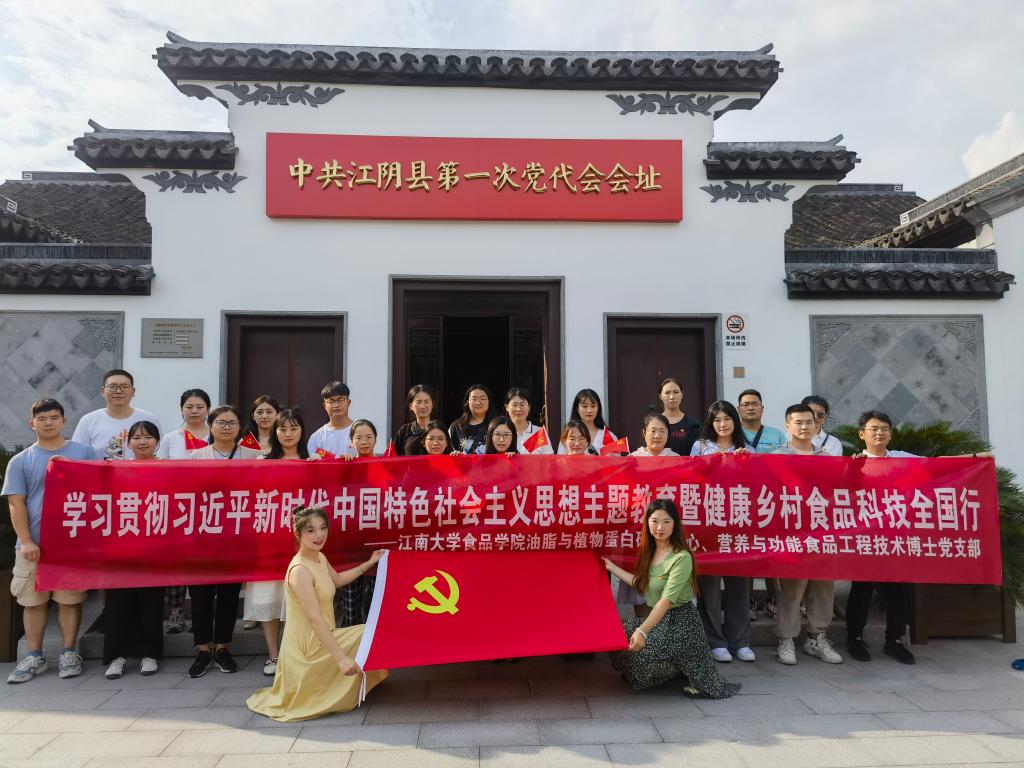 在全党深入开展学习贯彻习近平新时代中国特色社会主义思想主题教育之际,食品学院组织动员党员同志以实际行动助力乡村振兴、共筑健康中国。7月14日,食品学院油脂与植物蛋白研究中心博士党支部和营养与功能食品工程技术、国家工程实验室联合博士党支部两个省级样板支部经过多日的筹备,前往江阴市新桥镇开展“健康乡村 食品科技全国行活动”党日活动。