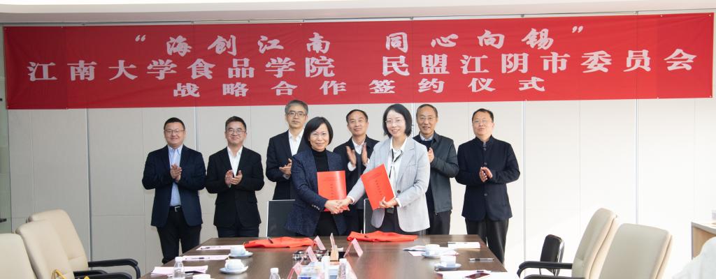 傅莉莉、钱晴分别代表江南大学食品学院党委与民盟江阴市委员会签署战略合作协议。
