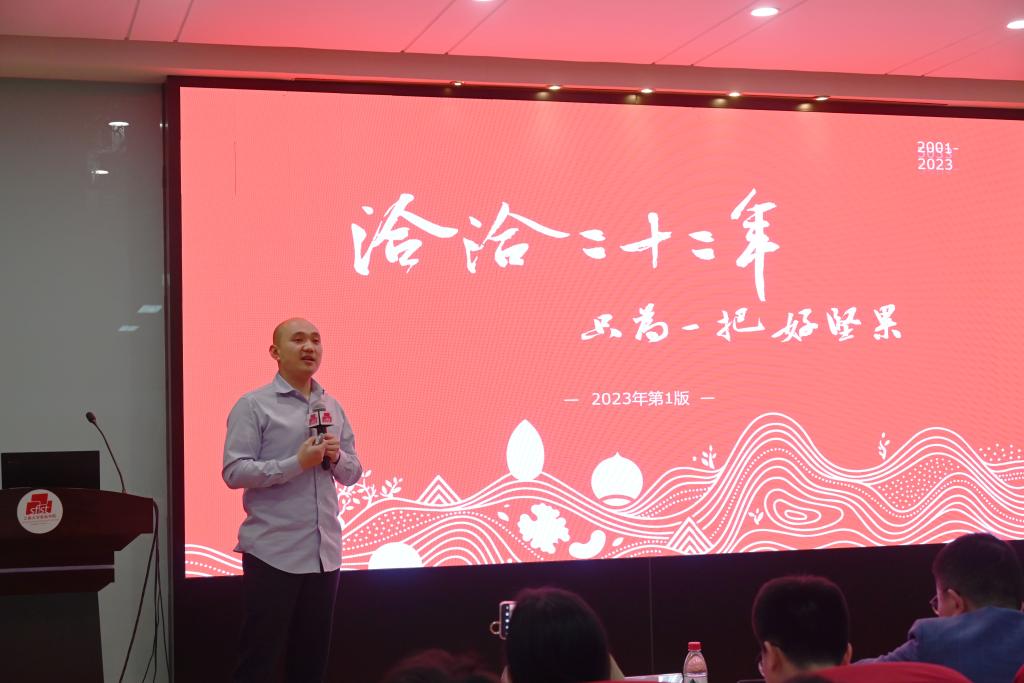 金龙回顾洽洽与食品学院的合作过往,介绍洽洽的发展历程、企业文化及核心优势,并围绕大赛主题、时间节点、评审要求、奖项设置等进行宣讲。他强调,本次大赛有助于实现产业与教育深度融合,促进同学们对食品行业更加深入了解,提升产品落地能力。