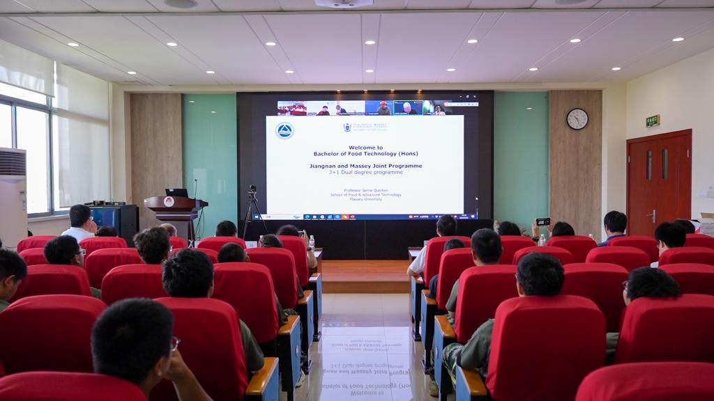 毓秀风华新起点,跨越山海再启航。近日,江南大学——梅西大学食品科学与工程专业本科中外合作办学项目2024级新生开学典礼在食品学院D912报告厅顺利举行。梅西大学理学院院长兼副校长Raymond Geor,食品及自然科学学院院长Jamie Quinton等在线参加典礼。江南大学党委常委、副校长堵国成,国际交流合作处处长倪晔,食品学院党委书记傅莉莉,副院长谢云飞、赵伟等领导与国际班59名新生现场出席典礼。典礼由食品学院党委副书记兼副院长李雷主持。
