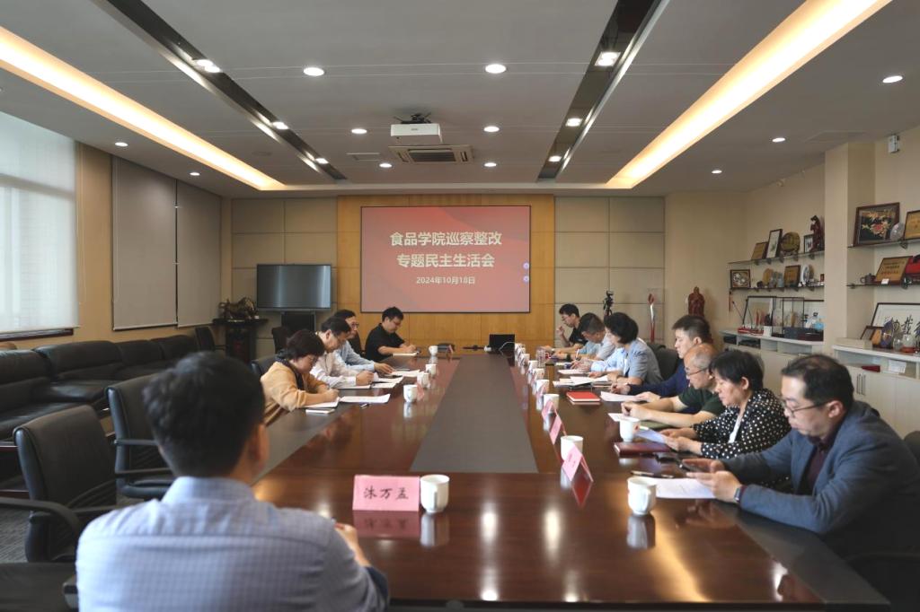 根据学校党委第一巡察组巡察情况反馈意见的要求,10月18日上午,食品学院党委在食品楼D910召开巡察整改专题民主生活会。校党委书记吴正国同志到会指导,校党委组织部常务副部长方正泉同志,校纪委副书记、纪委办公室主任兼监察处处长魏静同志列席,食品学院全体党员中层干部出席会议。会议由学院党委书记傅莉莉主持。