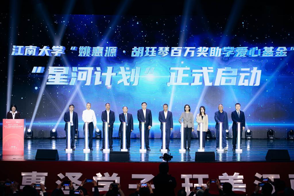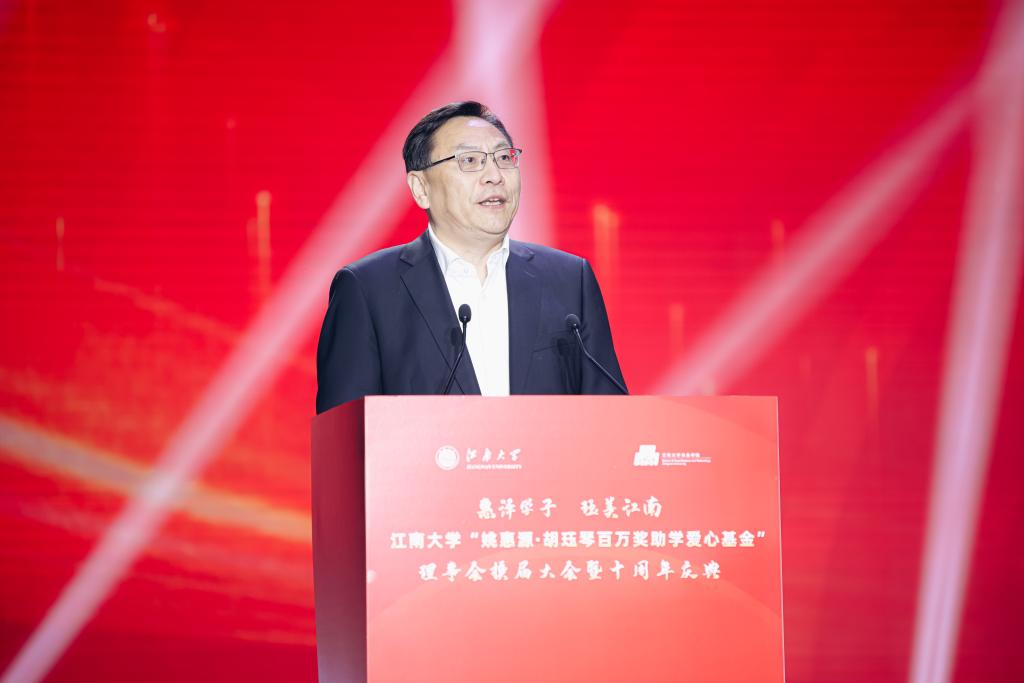 11月10日上午,“姚惠源·胡珏琴百万奖助学爱心基金”理事会换届大会暨爱心基金十周年庆典在江南大学文浩馆举行。食品学院首任院长、爱心基金设立发起人姚惠源,校党委书记吴正国,中国工程院院士、校长陈卫,校党委常委、副校长顾正彪、张影陆,中国工程院院士、食品学院教授金征宇,爱心基金理事会终身荣誉副理事长姚轶俊、高小荣、魏建功以及理事会其他主要成员、学校职能部门负责同志、校友代表、获奖学子、食品学院全体教职工、2024级本硕博学子等共千余人出席庆典大会。会议由食品学院党委书记傅莉莉主持。