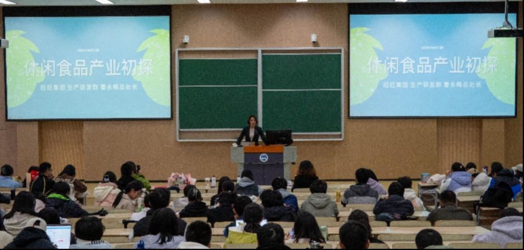 近日,《食品产业导论》迎来第三次课程——“休闲食品产业初探”。这次,我们邀请到休闲食品领域著名代表性企业——旺旺集团的生产研发群群总、食品学院优秀校友曹永梅女士作为主讲嘉宾。