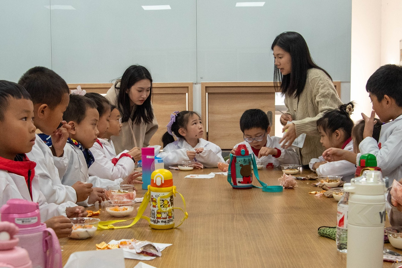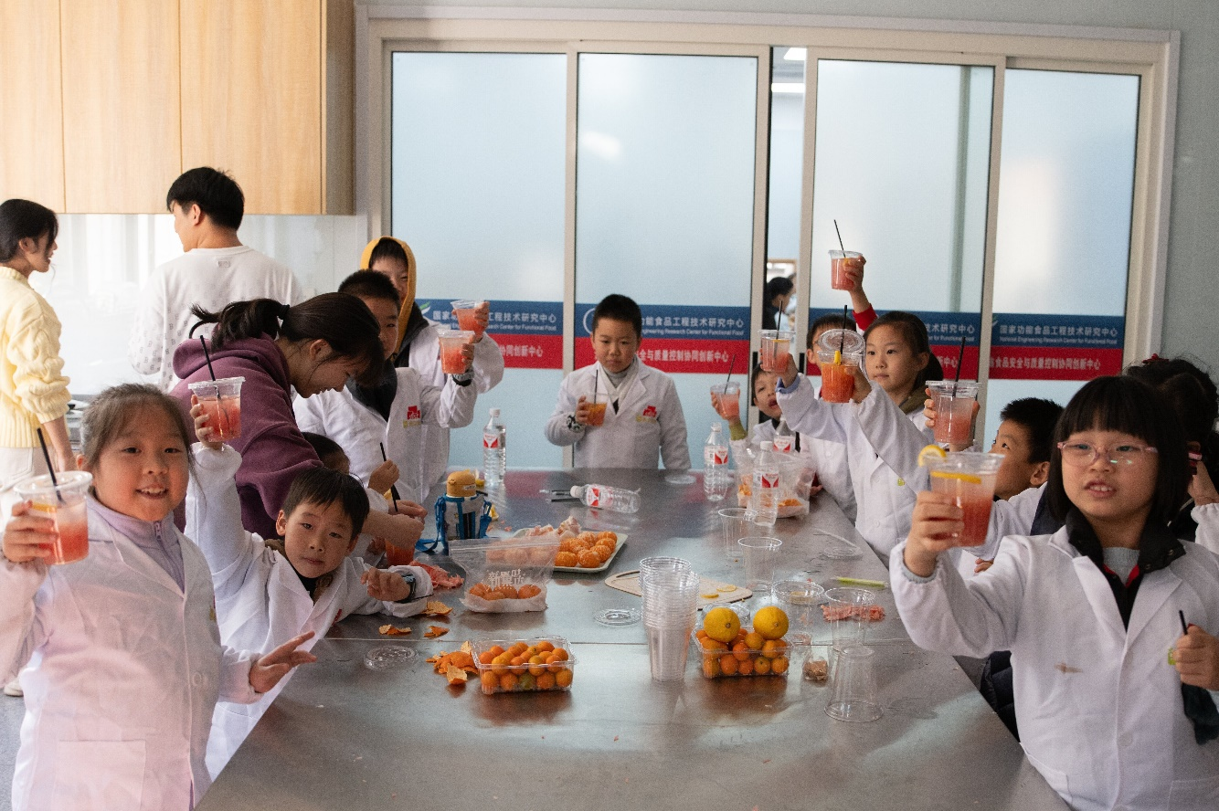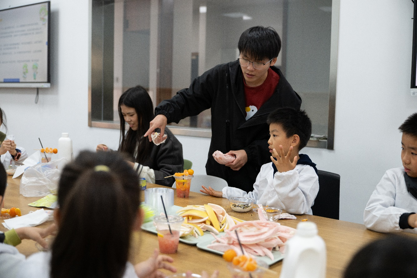 为帮助“江小娃”树立正确饮食观念,培养动手实践能力,食品学院分工会在校工会的支持下,与青芽食育大学生科普社团联合打造“关爱江小娃——‘食’趣科普实践工坊”系列活动,计划每月开展1期,一年12期。今年11月,首期活动“大柚作为——探秘柑橘类水果背后的故事”在食品学院食品工坊顺利举行。青芽食育团队通过普及柚子及其所属柑橘类水果中的食品科学知识,指导小朋友制作柚子创意美食,为“江小娃”带来了一场兼具科学、创意与趣味的“食”趣盛宴。