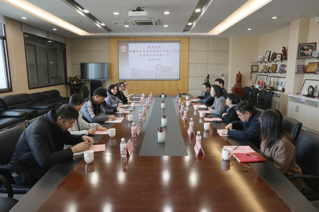 近日,新疆农业大学食品科学与药学学院党委书记姚剑英,副书记、院长杨晓君等一行7人来访我校食品学院。食品学院党委书记傅莉莉,副院长孙秀兰、翟齐啸、赵伟等接待来访。
