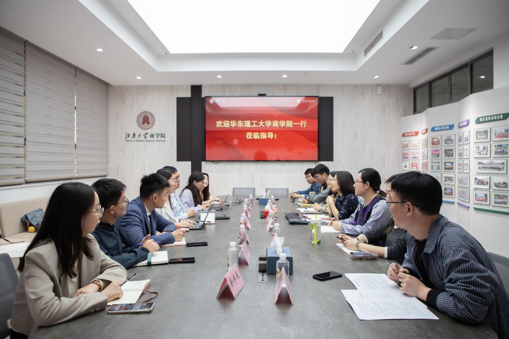 蒋志强对江南大学商学院的热情接待表示感谢,并简要介绍华东理工大学商学院的发展历程、学科专业、教学科研、国际合作等方面情况。华东理工大学商学院团委书记、学工办副主任宫文慧从学生特点、队伍建设、重点工作等方面,介绍华东理工大学商学院学生工作概况。