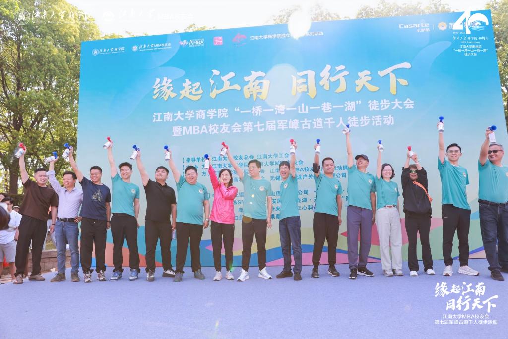 江南大学社会合作与校友联络处处长周云龙、体育部党总支书记周建中、校工会副主席刘伯贤、商学院党委书记刘长青、商学院院长浦徐进、中信银行无锡分行副行长江岚、博雅干细胞董事长李诣书、商学院分工会主席赵海蕾、江南大学MBA校友会执行会长王华科、副会长孙健、户外运动俱乐部部长、军嶂乐途创始人张伟、商学院无锡校友会秘书长谢玉山等嘉宾共同鸣枪启航,徒步活动正式拉开帷幕。
