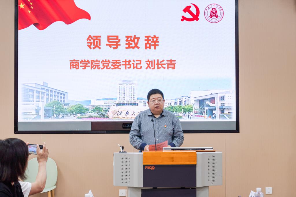 活动伊始,江南大学商学院党委书记刘长青在致辞中介绍了学院建院40周年发展成果、党建工作成效。他强调,党建引领是产教融合的根本保障,产教融合是人才培养与产业升级关键,期望借论坛探索产教融合新路径,深化校企合作,携手推动产教融合向纵深发展,为学生成长成才、企事业单位创新发展和社会进步做出更大贡献。