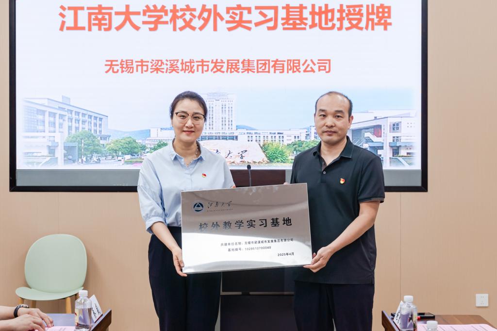 江南大学校外实习基地签约环节,江南大学商学院党委副书记兼副院长孙小芳与无锡新泽文商旅投资发展有限公司、无锡市梁溪城市发展集团有限公司、无锡高新人才发展集团有限公司企业代表完成签约。实习基地的搭建,既是理论与实践深度融合,助力学子成长为专业精英的沃土,也是为行业输送优质人才资源,提升产业发展活力的源泉。