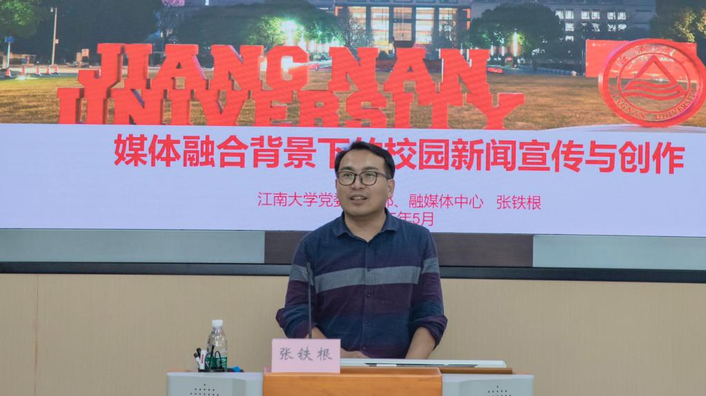 张铁根以《媒体融合背景下的校园新闻宣传与创作》为题,聚焦“媒体融合与全媒体传播体系建设”“新闻的种类及好新闻的特点分析”“融媒创作的基础知识与意识转变”“新闻宣传工作者的核心能力培养”四方面,深入指导学院师生如何有效增强脚力、眼力、脑力、笔力,成长为有思想、有温度、有情怀、有品位的宣传人。此外,他强调,要深入贯彻中央八项规定精神,践行“短、实、新”文风,用简洁明了、生动鲜活的语言传递信息。