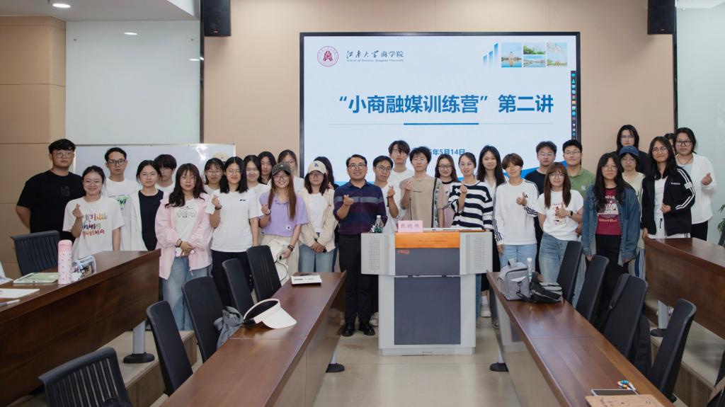 5月14日,商学院“小商融媒训练营”第二讲,在118会议室举办。本次活动邀请校党委宣传部、融媒体中心张铁根老师,开展新闻宣传专题培训。学院新媒体工作室全体成员以及学生骨干参加此次培训。