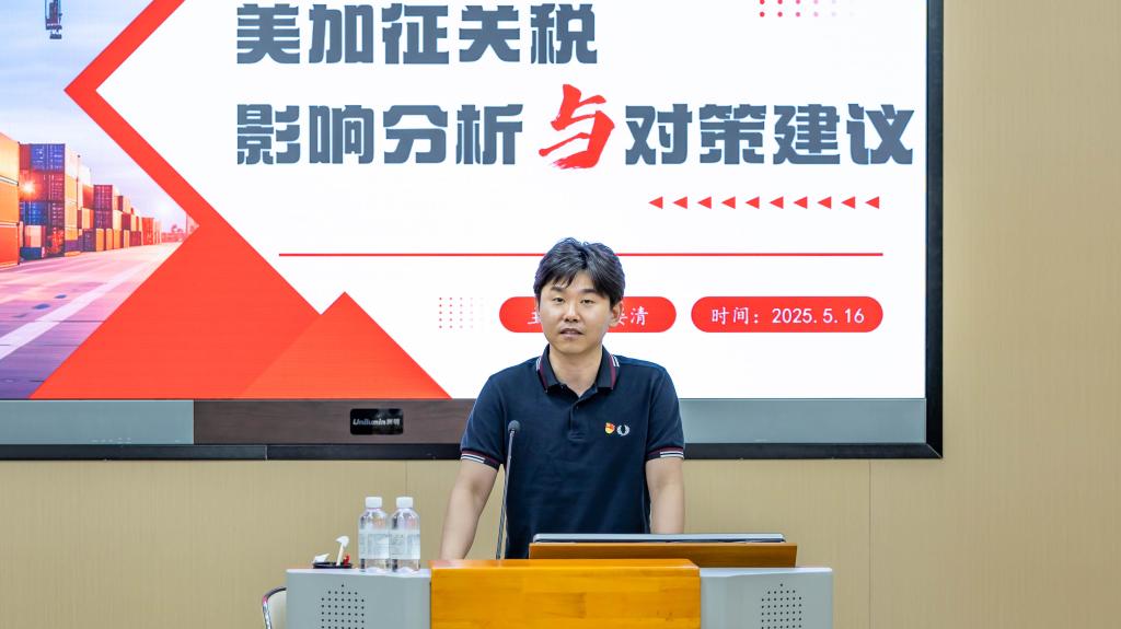 交流分享环节,无锡市发展改革研究中心发展战略研究部主任晏清以《美加征关税影响分析及对策建议》为题,系统梳理了对等关税的发展脉络,详细剖析了关税对社会经济平稳运行造成的影响,并围绕“以高质量发展的确定性应对外部环境的不确定性”这一核心,提出了一系列对策建议,包括强化宏观政策协调、推进内外贸一体化、发展生产性服务业等,为地方政府和企业应对贸易摩擦提供了重要参考。