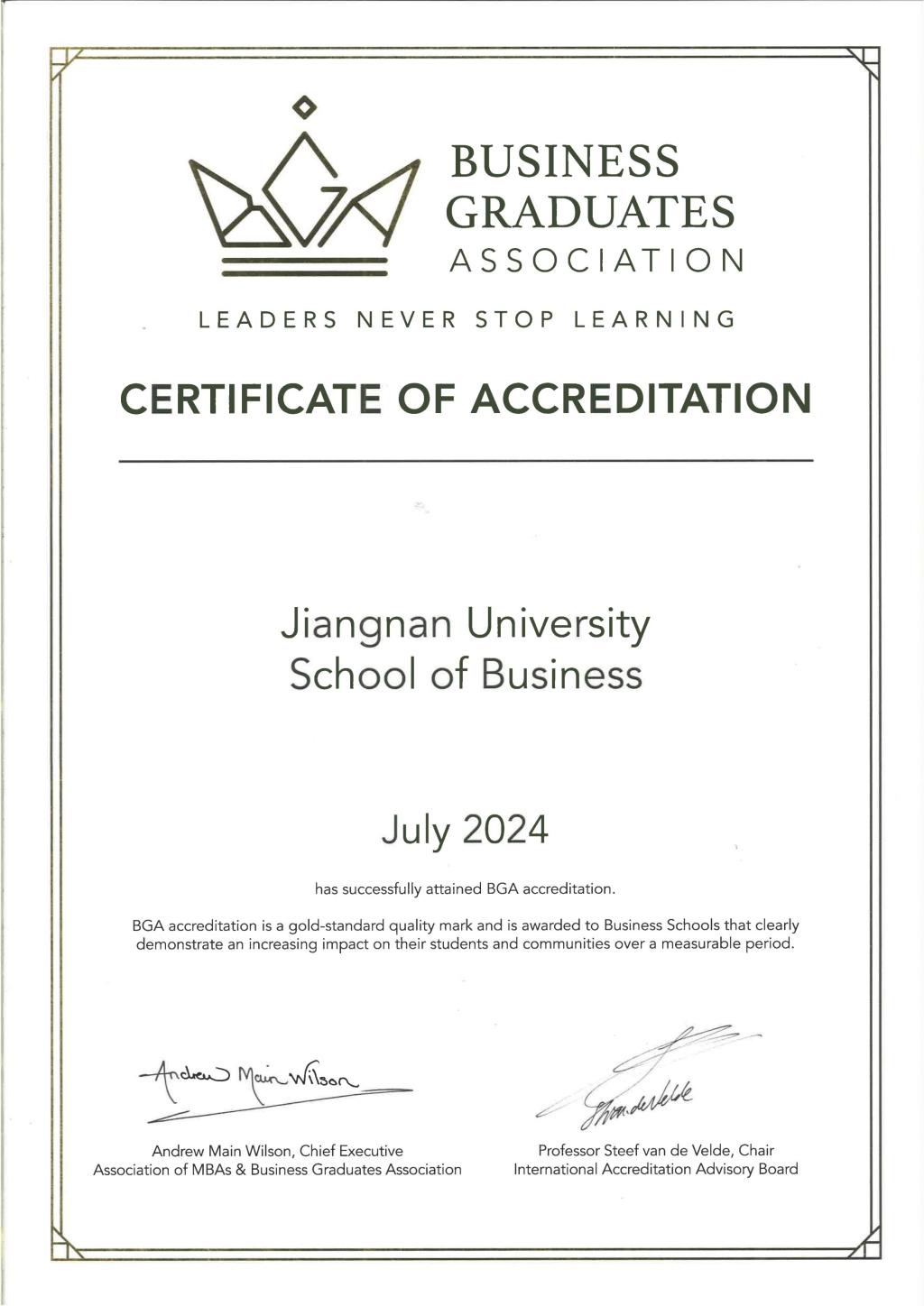江南大学商学院在2024年10月顺利通过BGA(金牌)国际再认证,并获得五年最高认证期限。刘长青代表商学院参加授牌仪式。他在会议发言中详细介绍了学院目前发展情况,并着重阐述了学院近年来通过持续开发MBA项目案例、发布《江南企业案例蓝皮书》等形式传承发扬江南工商文化的具体举措。