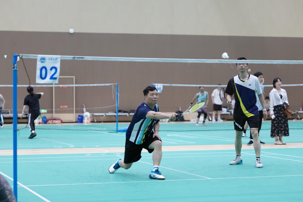 比赛设置男子单打、女子单打、男子双打、女子双打、混合双打五个项目,以团体赛形式进行。小组赛采用单循环积分赛,根据小组赛获得的积分,两组各取前两名进入排位赛。比赛现场,师生校友同台竞技,气氛热烈。选手们身姿矫健,奔跑、跳跃、挥拍、扣球,动作行云流水,引得观众阵阵喝彩,充分展现出顽强拼搏的体育精神。