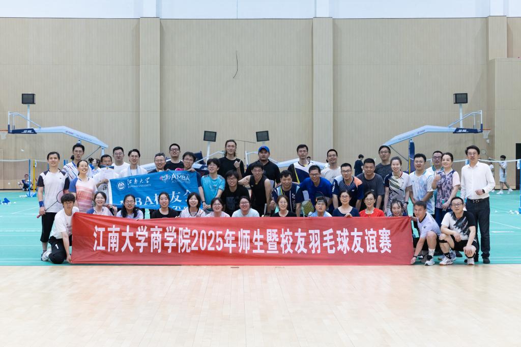 5月25日,商学院在风雨操场羽毛球馆,举办2025年师生暨校友羽毛球友谊赛。本次友谊赛吸引了由师生校友组成的7支队伍共计70余名选手参赛,其中包括10位留学生选手。