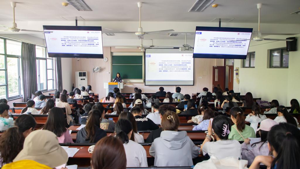 孙小芳以《清正第一步,明纪万里行——致即将启程的“青廉”一代》为题讲授专题党课。她从中国共产党员的廉洁基因、深入贯彻中央八项规定精神学习教育以及警惕职场贪腐风险三个方面展开讲授,通过文件解读、案例讲解等,让与会党员深刻认识到廉洁自律的重要性,明确如何在实际工作中保持清醒头脑,坚守廉洁自律底线。最后,她针对毕业生党员提出了三点建议,即植入“清廉基因”,构建思想防线过滤系统;接种“防腐疫苗”,建立行为规范免疫机制;树立“担当价值”,锻造实干真功夫。