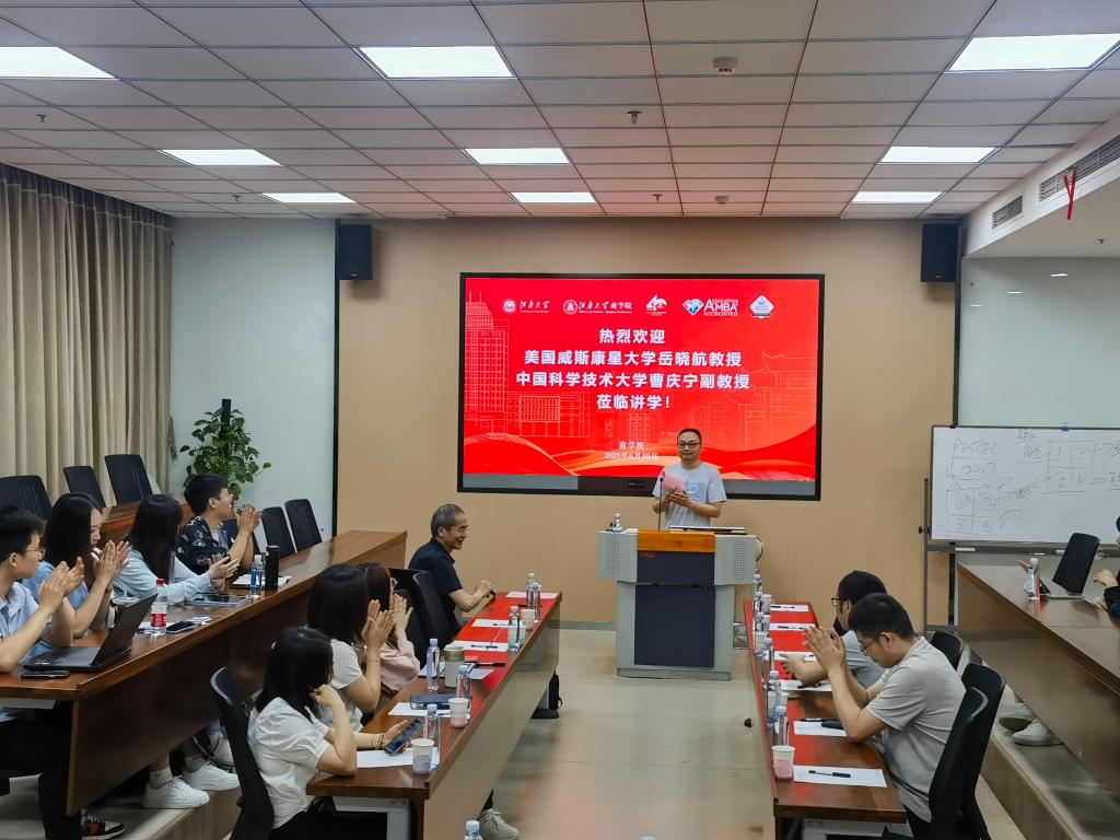 近日,数智运营与供应链管理研究团队学术交流活动第三期在商学院116报告厅举行。活动邀请美国威斯康星大学米尔沃基分校岳晓航教授、中国科学技术大学曹庆宁副教授作分享。本次活动由商学院数智运营与供应链管理研究团队负责人张建强教授主持,学院各专业教师和研究生20余人参加活动。