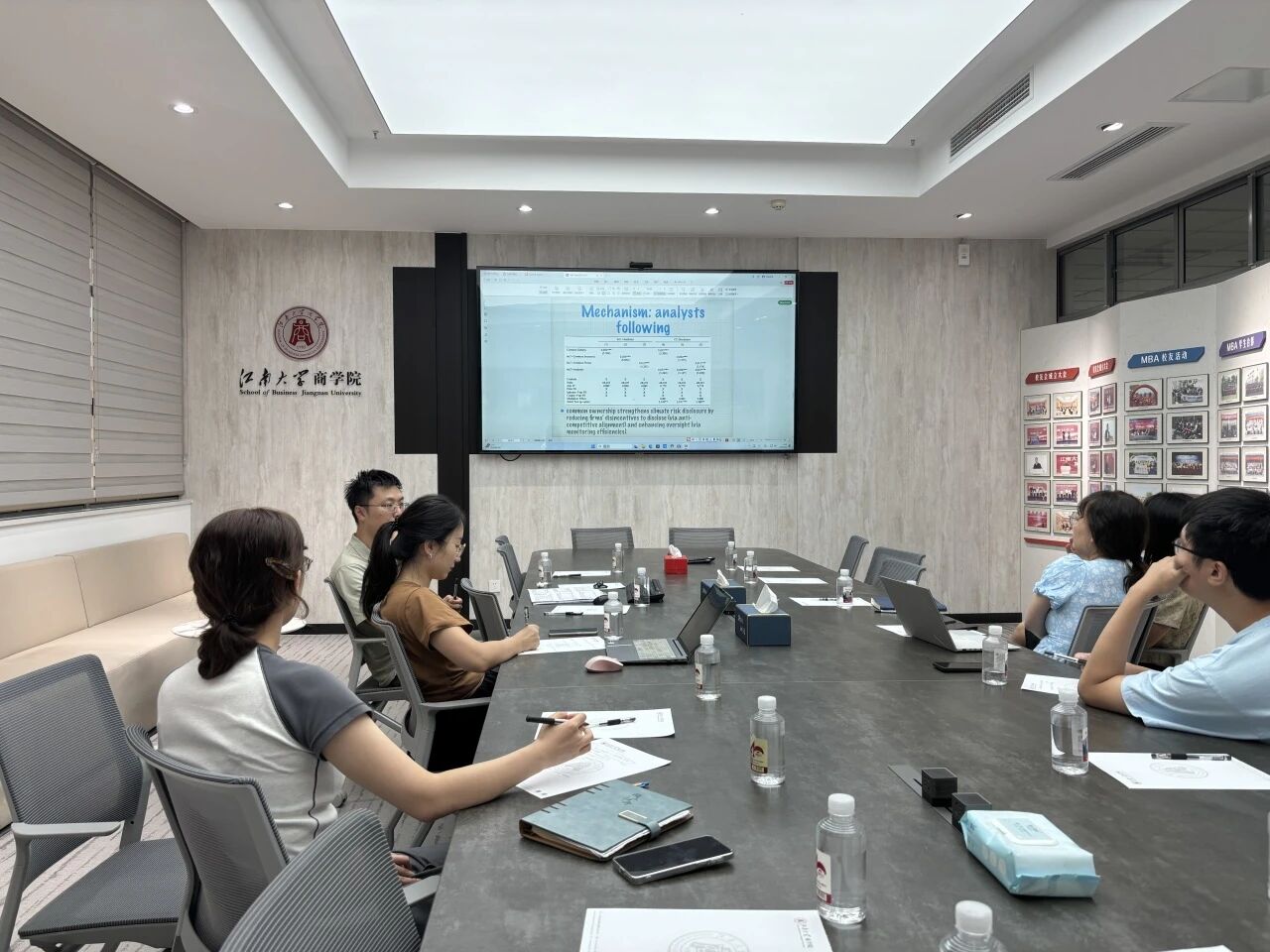 近日,商学院第22期青年博士学术工作坊在学院109会议室举行。北京第二外国语学院罗伟杰副教授受邀作题为《Common Institutional Ownership and Climate Risk Disclosure: Evidence from U.S. Public Firms》的学术报告。报告由商学院刘畅博士主持,学院会计系、金融系部分教师及研究生参加讲座。