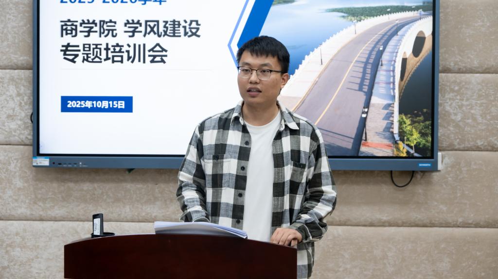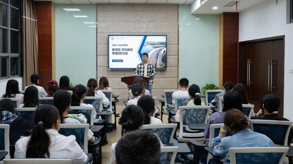 10月15日,商学院在117教室举办学风建设专题培训会议。会议围绕学业辅导技能、学风建设机制、学风建设举措等展开专题研讨,为新学期精准推进学风建设工作绘制“任务书”。新生辅导员陈滢恬、人文学院2022级师范生付沅平、2024级优秀学业辅导员孙飞扬、全体新生学业辅导员、新生学习委员及学风建设部负责人等40余人参加会议。会议由学院学风建设工作辅导员王瑞生主持。