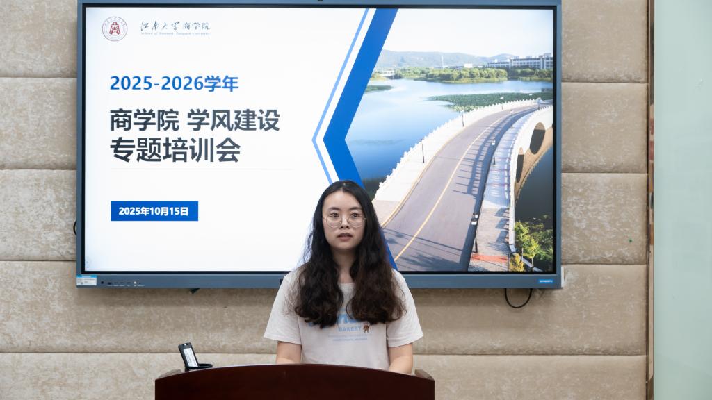 王瑞生从学风建设的重要性切入,明确了学习委员与学业辅导员在学风建设当中的关键作用。他详细解读了《江南大学商学院班级学风建设目标责任书》和《江南大学商学院学业辅导员管理考核办法》,并结合班级学风建设案例,为新学期学院学风建设工作明确方向与具体要求。