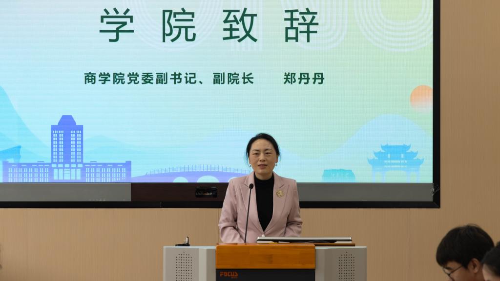 郑丹丹代表学院对到场嘉宾和师生表示欢迎,并指出西部计划实施23年来,江南大学已派出1243名志愿者扎根基层、服务社会,践行志愿精神,商学院也有69名学子投身其中,用实干践行青春担当。她鼓励同学们跳出舒适区,将专业所长融入基层实践,勇敢奔赴西部与乡村一线,实现知识赋能与个人成长的同频共振,在社会发展和国家富强的历史里留下自己的印记。