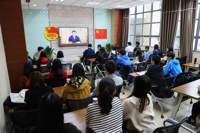 2019年4月30日上午,纪念五四运动100周年大会在人民大会堂隆重举行,中共中央总书记、国家主席、中央军委主席习近平出席大会并发表重要讲话。为引导学生重温五四精神、加深对五四运动历史意义和时代价值的认识,商学院组织本科生及研究生党员团员、学生组织干部集体收看大会直播。