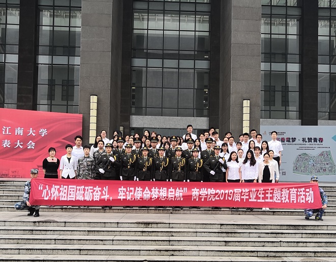 此次观礼升旗仪式,是学院深入开展“我爱你,中国”2019届毕业生主题教育系列活动的重要组成部分,旨在激励和引领即将走出校门的毕业生弘扬以爱国主义为核心的伟大民族精神,传承“笃学尚行、止于至善”的校训精神,践行“笃学明道,经业济世”的院训精神,培养怀揣梦想、勇于担当、情系母校、报效祖国的爱国荣校情结,展现江南学子奋发向上的精神风貌。同时,对即将毕业、开始人生新征程的大四学子而言,在此时接受一场以爱国主义为核心的“沉浸式”仪式教育的意义尤为深刻。理想之光不灭,信念之辉永存。吾辈青年应将青春梦想汇入时代洪流,让蓬勃青春与家国情怀共振,“肩兹砥柱中流之责任”,在国家社会的建设发展过程中书写天下江南人的锦绣华章。