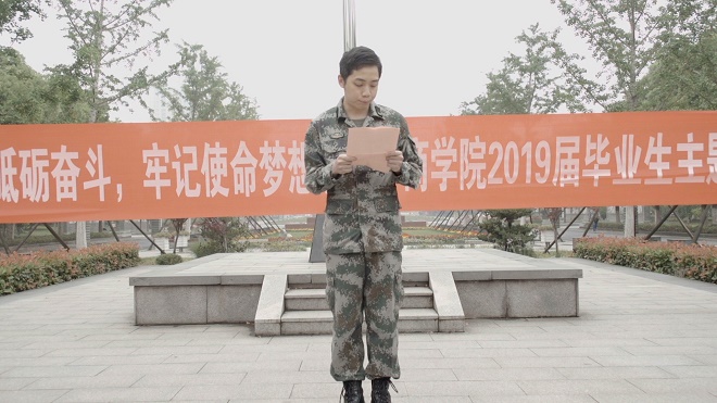 2015级金融1502班毕业生、退伍老兵代表易坤作国旗下演讲