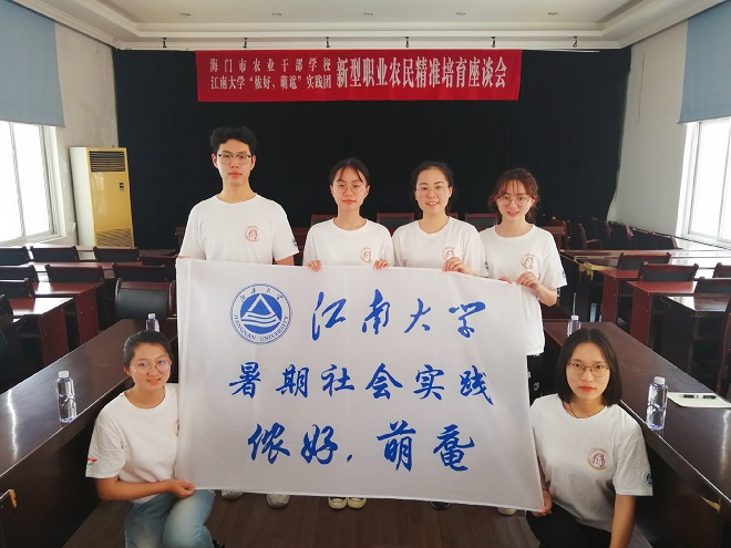 7月21日至7月26日,江南大学“侬好 萌鼋”实践团队一行六人在海门市农业干部学校工作人员的带领下,进行了为期六天的实践调研。此次调研围绕“新型职业农民精准培育的创新模式研究——以海门市为例”展开,通过访谈座谈、问卷调查和实地走访的方式,深入了解海门市新型职业农民培育现状、问题和发展方向。“侬好 萌鼋”实践团结合前期策划和各自学科知识,调查团队创新方案的可行性。