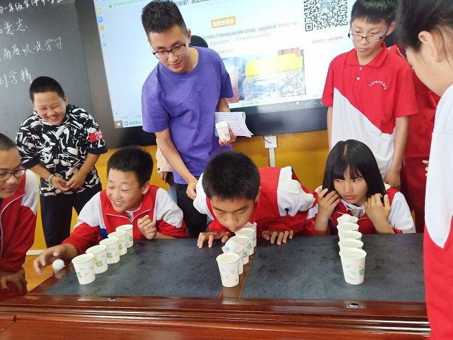 团队成员组织学生参加趣味游戏活动