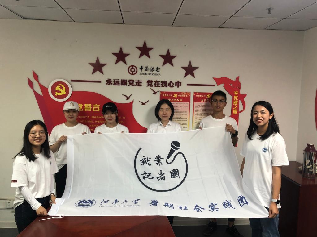 8月13日至8月15日,江南大学商学院“就业记者团”暑期社会实践团一行5人在南京、无锡二地开展了为期三天的实地调研活动。探访无锡大成工业园区的实体经济发展状况;在南京8所高校进行实地问卷调查,了解了不同专业的高校学生的就业意向和选择,并就国家“振兴实体经济”发展战略与他们进行交流;通过采访座谈的形式,深入了解以银行为代表的虚拟经济在应届大学生招聘方面的现状、问题、现阶段的措施以及未来发展趋势,并作为学生代表,结合国家实事与自身的商科知识为以银行为代表的虚拟经济企业提出了理论建议。