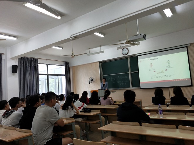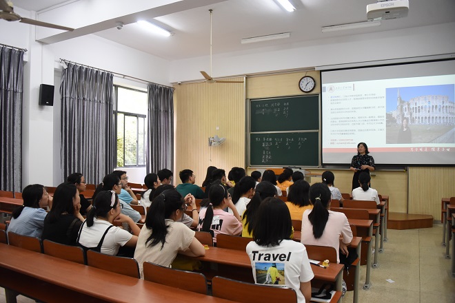 商学院2019级班主任、院党委书记李佳敏老师主持新生班会