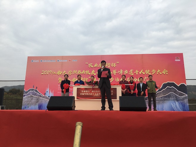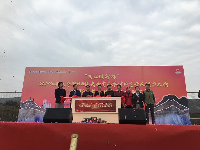 10月27日上午,由江南大学商学院、江南大学校友会指导,MBA校友会主办,军嶂乐途、MBA徒步俱乐部、MBA跑团承办的“农业银行杯”2019江南大学MBA校友会首届军嶂古道千人徒步大会暨“江南同行”校友徒步活动启动仪式在江南大学西北操场举行。江南大学社会资源处处长、校友会副会长黄敏,校友会秘书长林云鉴,商学院党委书记李佳敏,商学院副院长兼MBA教育中心主任武戈,MBA校友会会长梁乃霞,秘书长唐杰等出席开幕式,近1200名MBA校友和社会各界人士参加徒步大会。