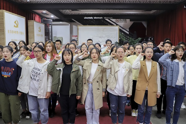 值新中国成立七十周年之际,为深入开展“不忘初心、牢记使命”主题教育,学习习近平新时代中国特色社会主义思想,贯彻“守初心、担使命,找差距、抓落实”的总要求,10月31日下午,在辅导员王珏老师的带领下,商学院管理学科本科生第一、第二党支部共44名党员前往无锡市第一党支部开展“重温入党誓词,牢记初心使命”主题党日活动。
