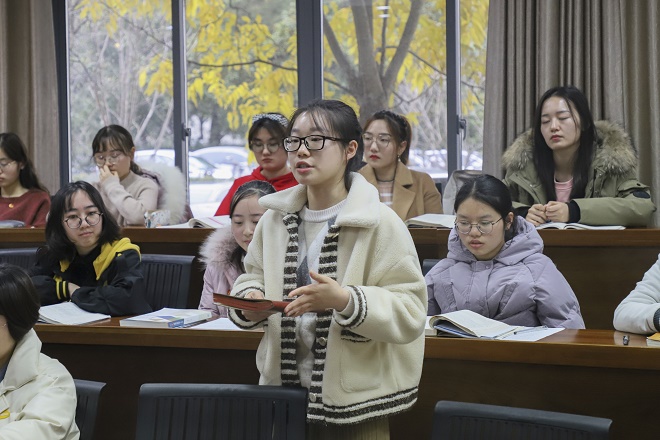 活动伊始,会计1702班班长江璐瑶以“我们的2019”为题进行年度班级工作总结,分别从班级组织建设、专业学习建设、思想学习建设、实践锻炼学习四个方面汇报了班集体、团支部所开展的工作、所取得的成绩以及未来发展规划。随后,国家奖学金获得者卢柳言、王瑶就期末备考攻略与同学们分享经验;乔偲祺、张毅、蒋凤蝶分别从会计专业与诚信、学习中的诚信、生活中的诚信三个不同角度畅谈体会。结合“诚信”主题,在场同学们表示,定将坚守诚信为立身根本、坚持奋斗为青春底色。