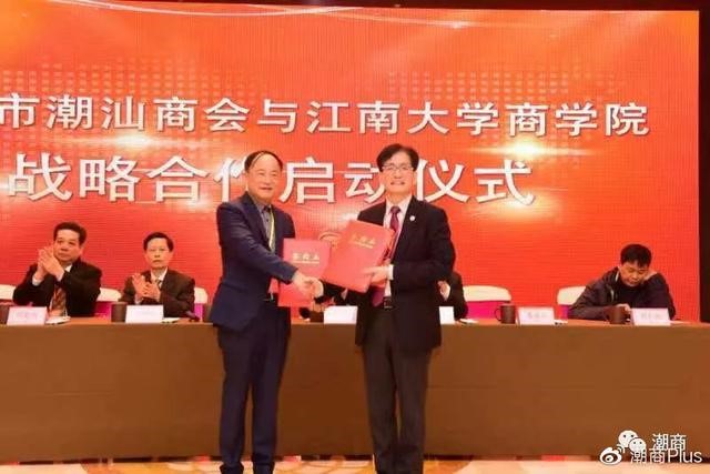 会上,滕乐法院长和周武振会长分别代表双方签署战略合作协议,参会的市、商会领导共同开启无锡市潮汕商会与江南大学商学院战略合作启动仪式。