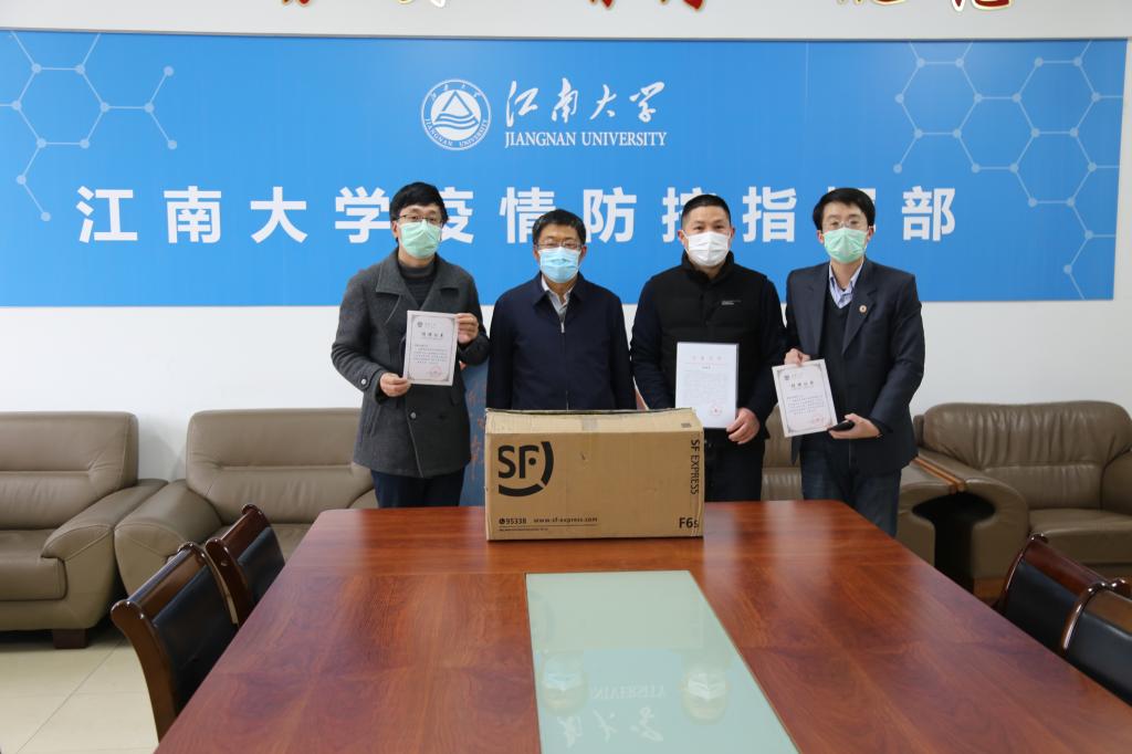 2月29日,在新型冠状病毒肺炎疫情防控的决胜关键期,江南大学MBA企业导师、香港北区工商业联合会名誉会长、香港融盈资源控股集团有限公司董事局主席、爱德新能源投资控股集团有限公司首席执行官、香港中国企业协会上市公司委员会副理事长耿国华先生和江苏金易福餐饮管理有限公司、无锡超越电子有限公司董事长俞超女士委托商学院向江南大学捐赠一次性应急口罩2000只,支援我校的疫情防控工作。江南大学副校长陈卫代表学校接受捐赠,并转达了学校的诚挚感谢。商学院党委书记张海峰、副院长兼MBA教育中心主任武戈、MBA教育中心办公室主任唐杰参加了捐赠活动。