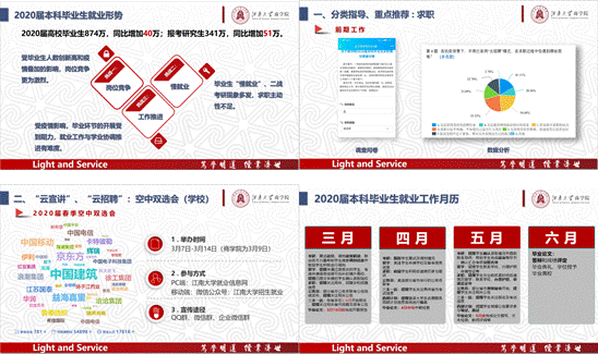 商学院历来高度重视和关心应届毕业生就业工作,面对今年毕业生人数创新高和疫情叠加的形势,学院将秉持“线上招聘不停歇、就业服务不打烊”的工作理念,多渠道推进毕业生就业工作。学院后期将进一步拓宽就业渠道,举办商学院春季空中双选会和宣讲会,帮助毕业生顺利毕业、尽早就业。