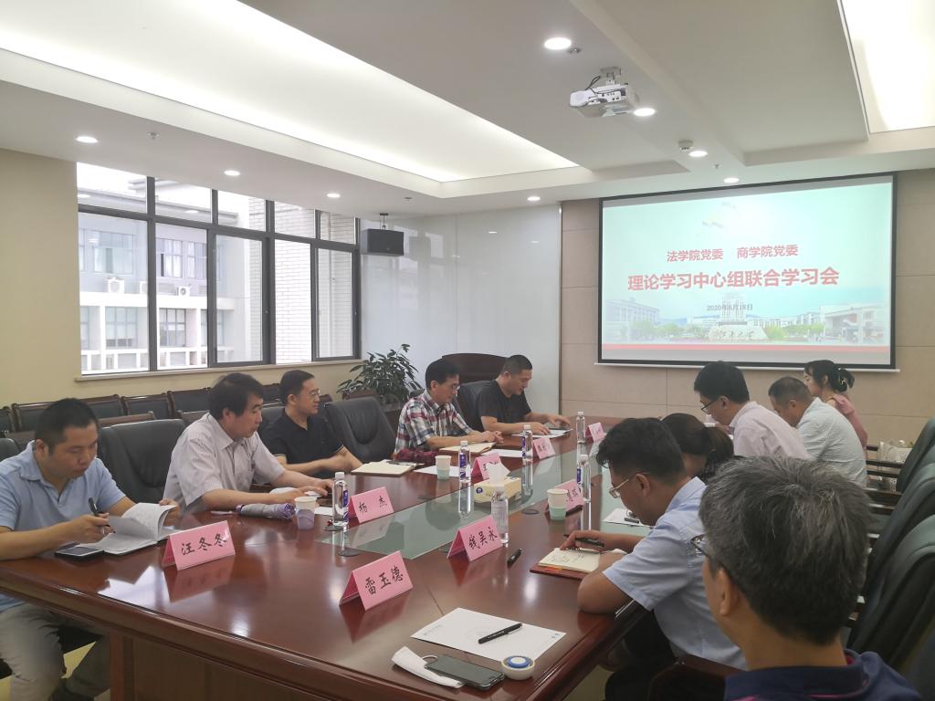 为深入推进“两学一做”学习教育常态化制度化,紧密围绕“不忘初心、牢记使命”主题教育整改,切实加强领导班子思想政治建设,6月18日下午,商学院党委、法学院党委联合举行理论学习中心组学习会,两个学院党政班子成员等参加了学习活动。学习会由法学院党委书记杨杰、商学院党委书记张海峰共同主持。