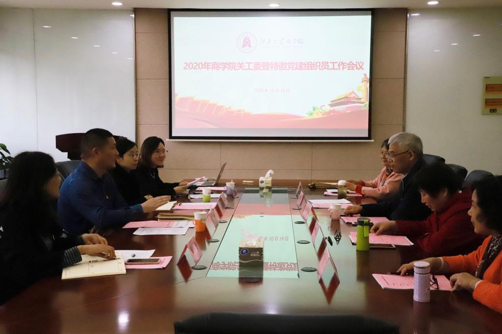 10月16日下午,商学院2020年关工委暨特邀党建组织员工作会议在304会议室召开。院党委书记张海峰、院党委副书记兼副院长徐静、院党委秘书强心宇、院关工委老同志及学生党员代表出席会议,会议由辅导员王璁主持。