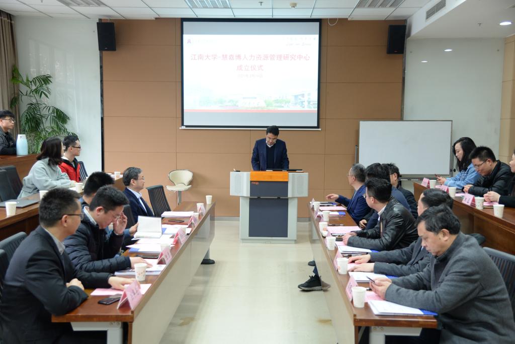 3月19日下午,江南大学与江苏开心工作科技有限公司共建“江南大学-慧嘉博人力资源管理研究中心”签约揭牌仪式在江南大学商学院116举行。无锡市人社局副局长李博、新吴区人社局副局长张轶、无锡市人力资源协会会长徐达增、江苏开心工作科技有限公司董事长蒋丹,江南大学社科处处长浦徐进、江南大学人力资源处副处长陆秦、无锡人力资源开发研究基地主任朱晋伟等出席签约揭牌仪式。仪式由江南大学商学院副院长钱吴永主持。