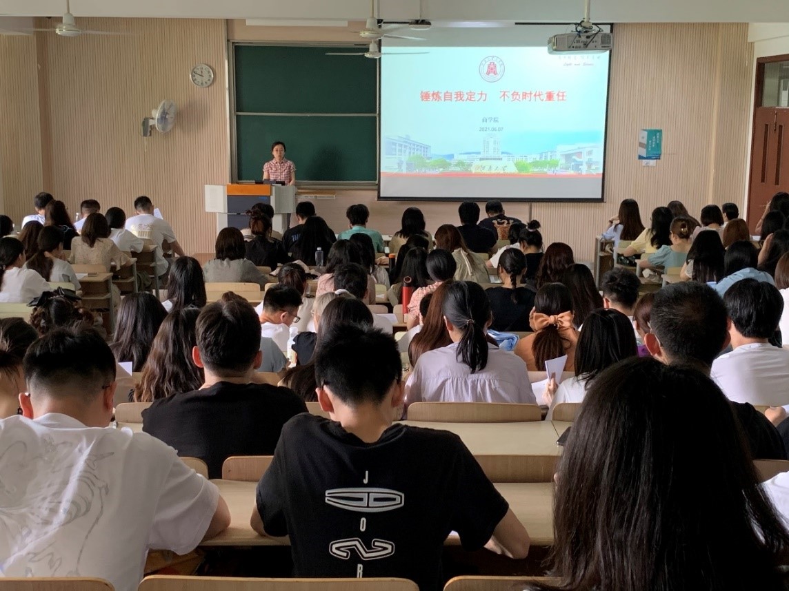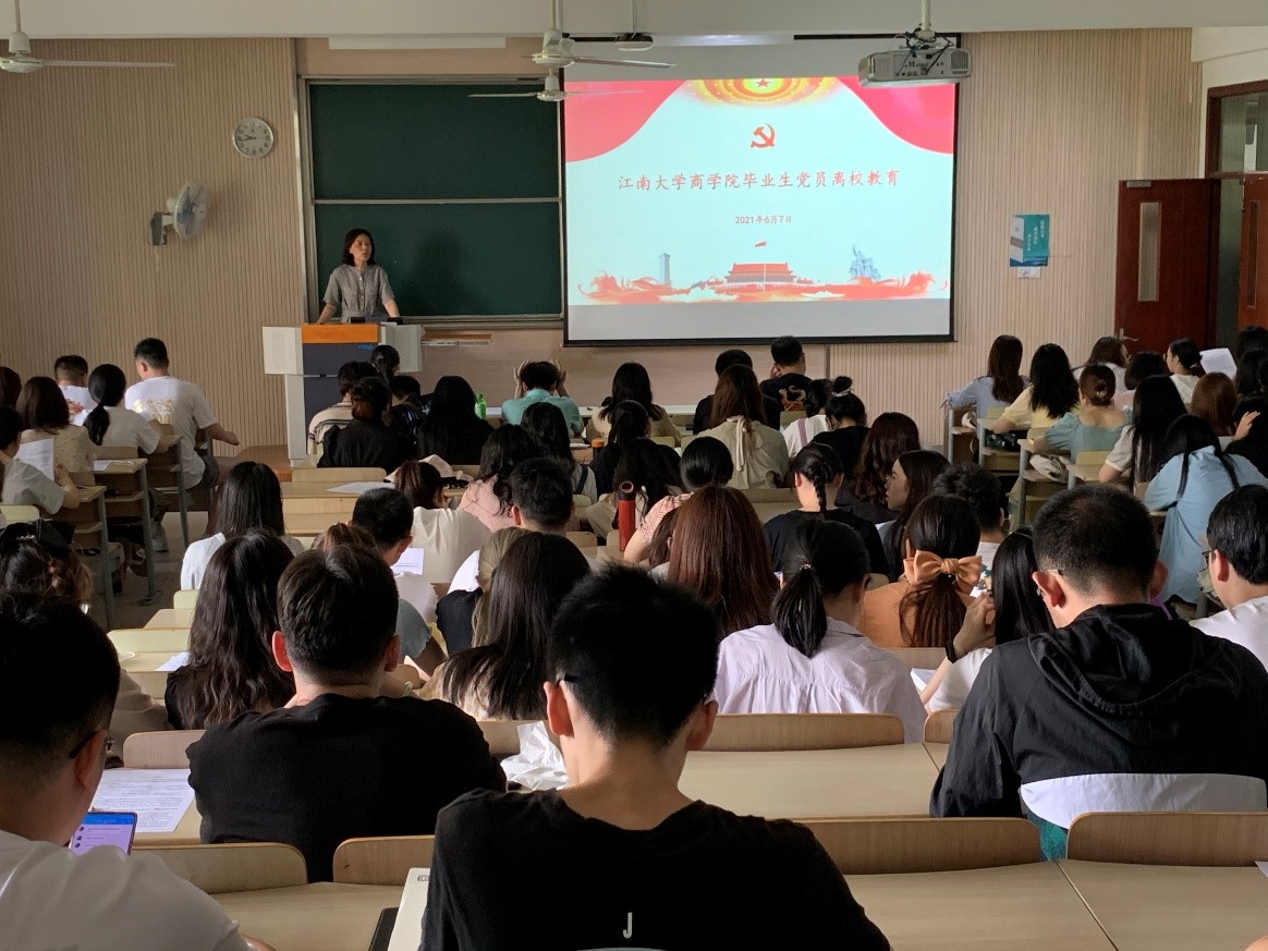 为深入贯彻落实全面从严治党要求,进一步加强毕业生党员教育,提高党员的政治纪律、政治规矩和政治意识,同时确保毕业生党员组织关系顺利转接,近日,商学院党委召开了以“锤炼自我定力,不负时代重任”为主题的毕业生党员离校教育活动。商学院党委副书记徐静、专职组织员强心宇出席本次活动,商学院辅导员曹梦然以及120余名毕业生党员参加了本次离校教育活动。