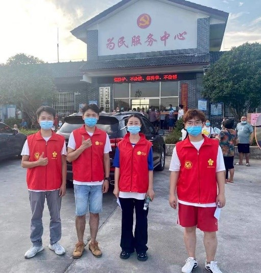 回想在常德市桃花源旅游管理区的志愿服务经历,毛诗涵说到,桃花源核酸检测点的任务量大、场地有限、人手紧张,加之酷暑高温,为现场检测及人员管理带来极大挑战。她认为很苦、很累,但值得。“记得有一回,核酸检测设备突然故障,我担心排队等候多时的民众会有不满情绪进而引发混乱......我和同组队友立即分头行动、走进人群,小心地将老人孕妇等须特殊照顾的市民搀扶到室内等候,同时向队伍前后说明情况,引导市民有序等候。好在故障很快被解除,检测人员尽力加快后续进程,大家合力完成了既定任务。”她分享这段经历时说到,从前,只在网络媒体上学习了解过抗疫逆行者的英勇事迹;后来,在学校的动员鼓舞下萌发了对志愿服务的志向与热情。“只要家乡战疫需要我们,我们必定倾尽全力!”