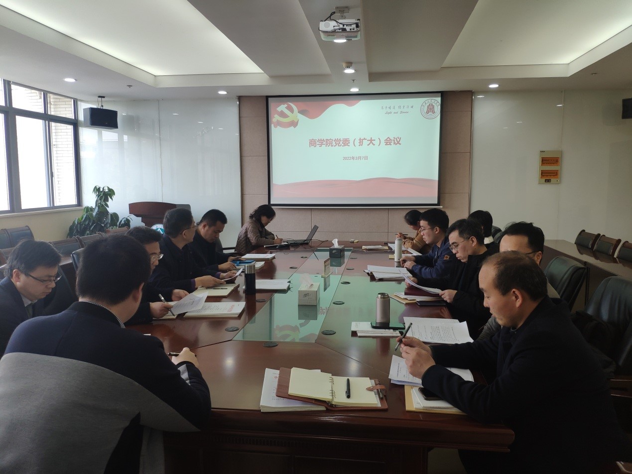 3月7日下午,商学院在304会议室召开党委(扩大)会议,研究部署新学期党建工作,学院全体党委委员、教工党支部书记及学生党建工作负责人参加会议。会议由院党委书记徐锡清主持。