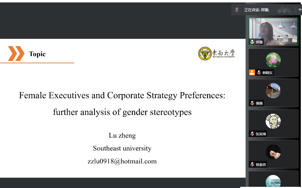 郑璐分享了“女性主管和公司战略偏好”问题,针对女性高管在管理层的比例受到广泛关注,而目前国内的女性经济参与排名在国际上较低的现实背景。考虑到企业的战略选择取决于领导的价值观与认知取向,对女性领导者在推动公司决策提出了五个假设,女性的领导风格偏向关怀、民主、包容的,一方面可以激励管理层的其他成员,另一方面会提高员工的忠诚度,以及女性在决策时会选择打破刻板印象还是迎合社会偏好的考量。基于假设设计问卷并经过主效应检验和稳定性检验,以工具变量解决内生性问题。回答了女性如何、以及在什么情况下出现在公司领导中是有意义的问题。
